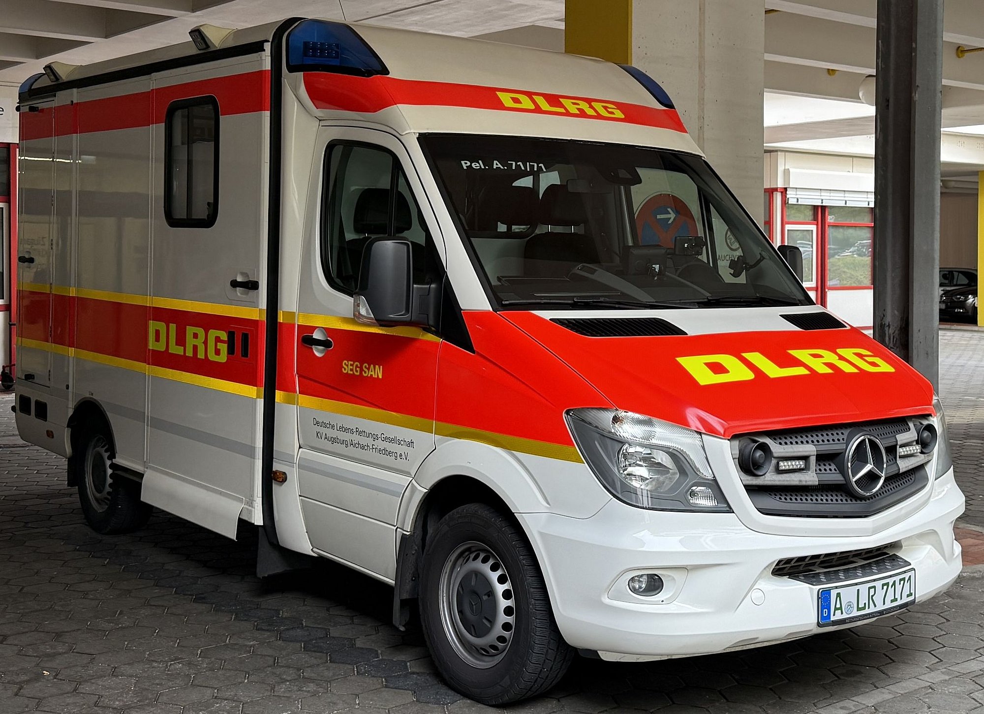 Der Einsatz von Rettungsdienstfahrzeugen in unserem Kreisverband hat bereits eine lange Tradition. So war unser aller erstes Einsatzfahrzeug ein für die Wasserrettung aus- und umgebauter Krankenkraftwagen. Über die Jahre blieb das Engagement im Sanitätsbereich erhalten und bis heute haben wir zwei Rettungswagen, mit denen wir bei Sanitätsdiensten oder Großschadenslagen im Einsatz sind. Der Pelikan Augsburg 71/70 und 71/71 sind dabei beide nach Norm ausgestattet. Neben Medikamenten und medizinischem Gerätschaften, darunter ein EKG, ein Beatmungsgerät und eine Absaugpumpe wird weiteres Material bereitgehalten um im Ernstfall das Überleben eines Patienten zu sichern.